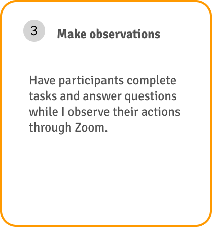 Remote Observation - Participants will share their computer screen while I observe their actions through Zoom.