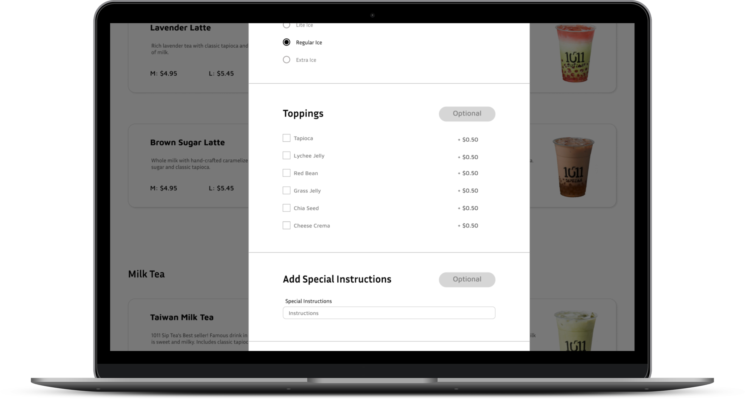 You want to get a boba before work on a hot day. Since 1011 Sip Tea is close to work, you decided to order pickup there. The Lavender Latte on their menu catches your eye.