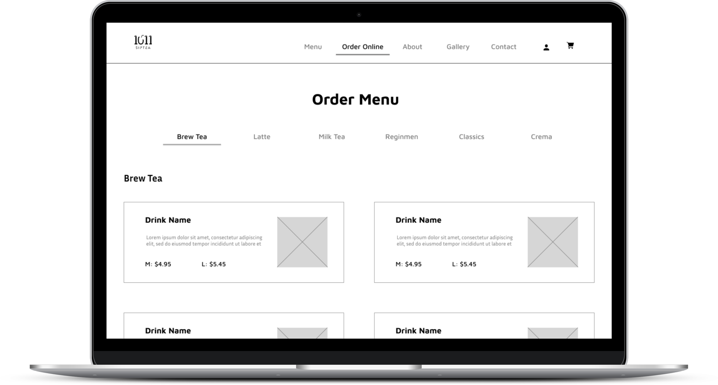 In the Discover stage, I learned that users appreciate drink photos and descriptions because it helps them decide what to purchase. With that in mind, I created a menu page that contained those features.